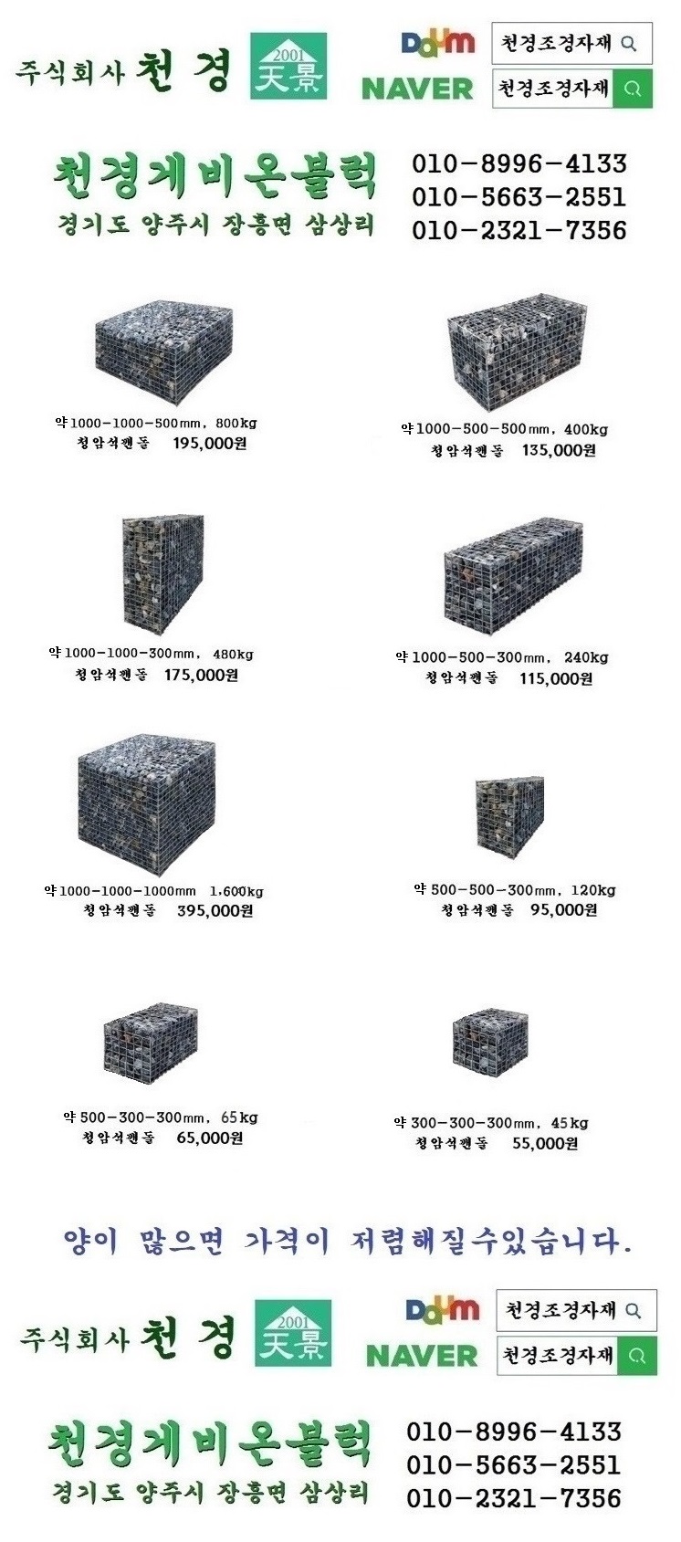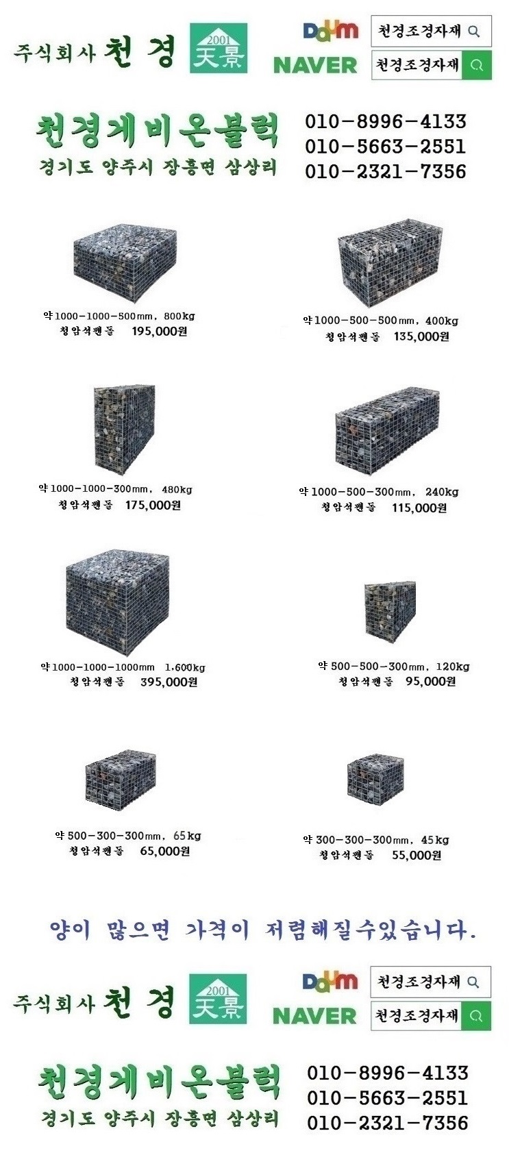천경 개비온블럭 완제품