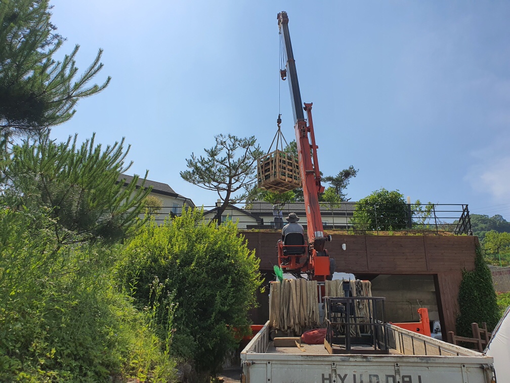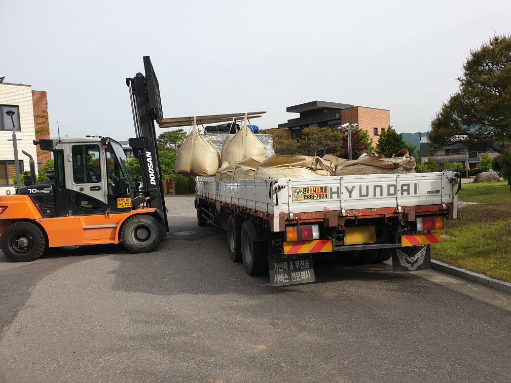 하차는 별도이며 지게차나, 포크레인, 크레인등 장비로