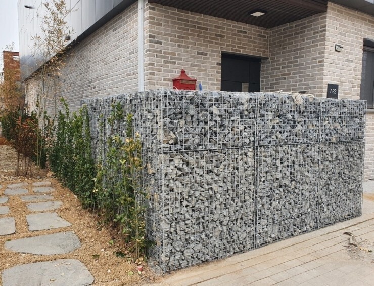 높이1.5m 게비온담장 현장설치. 참고하세요.