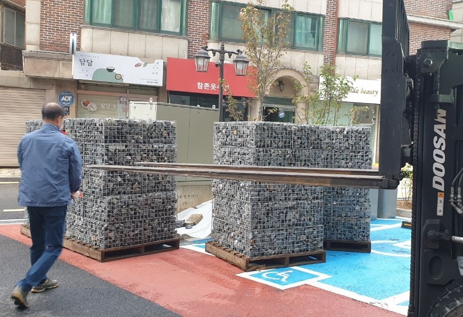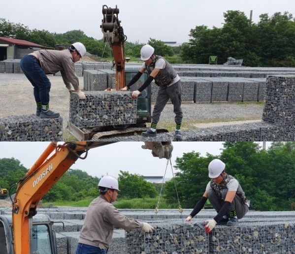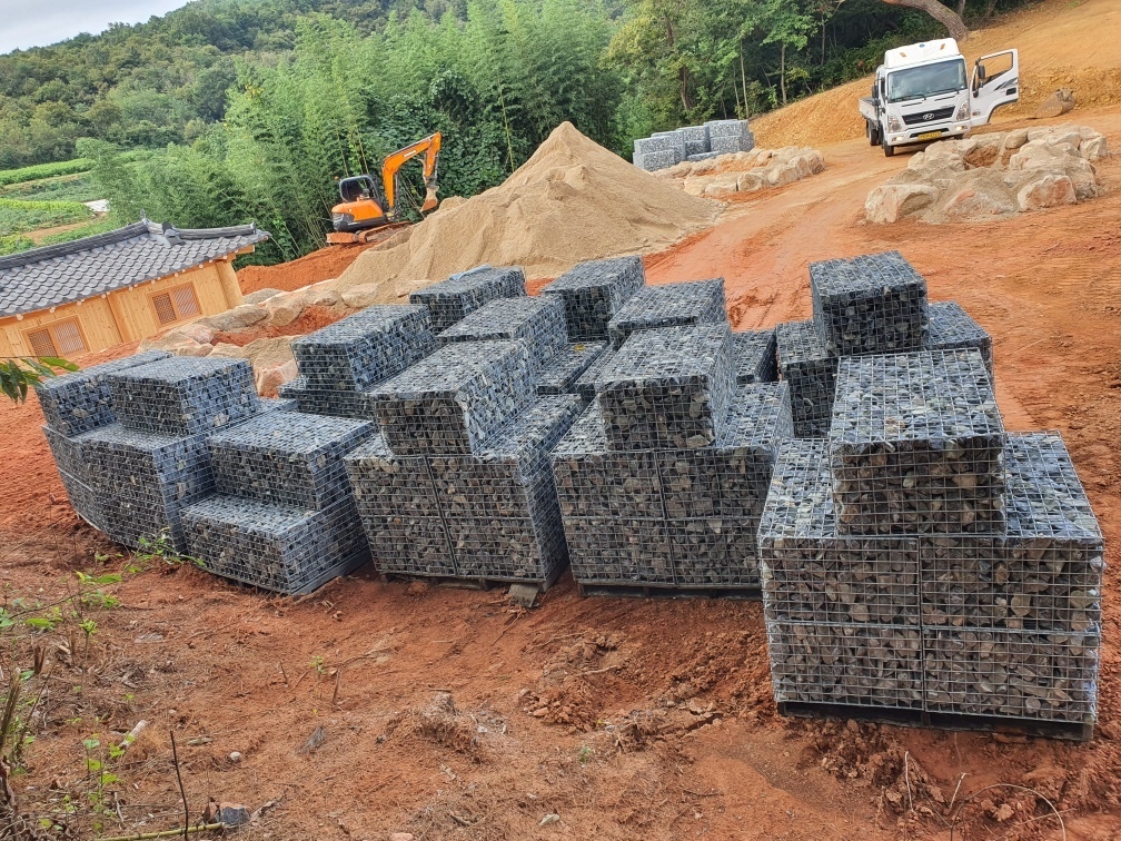 게비온블럭은 바닥기초만 단단하면 시공이비교적 쉬운장점이