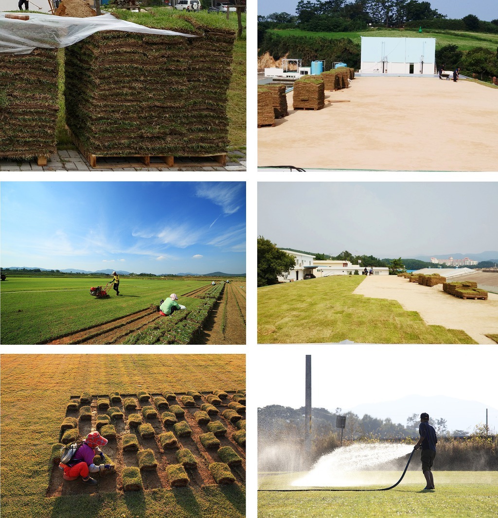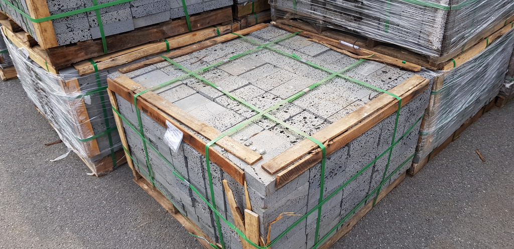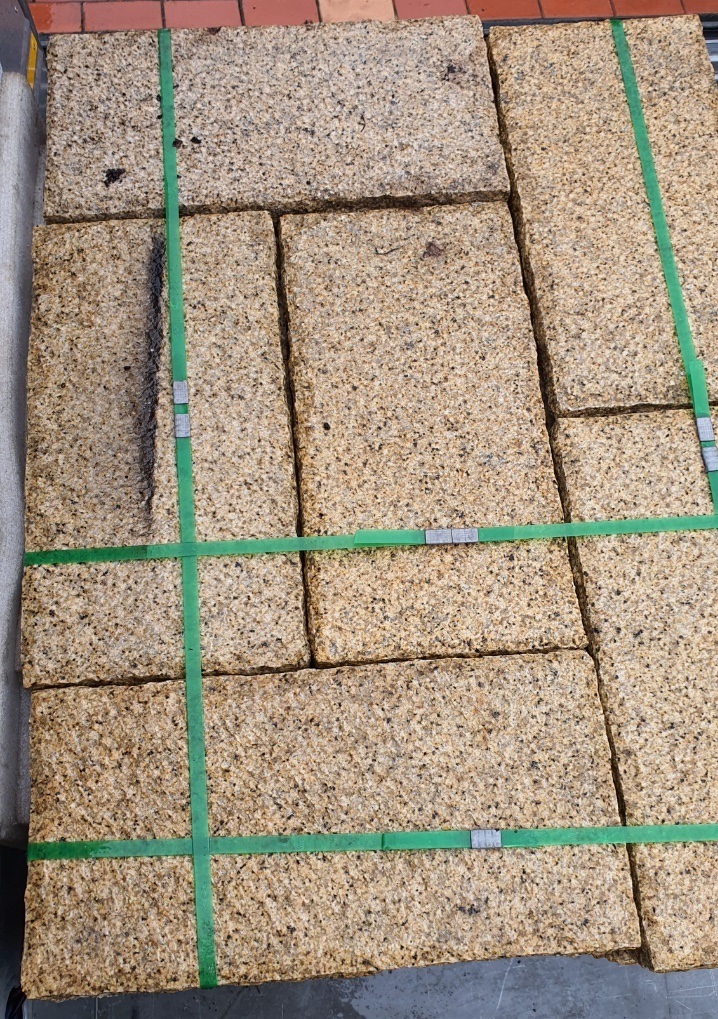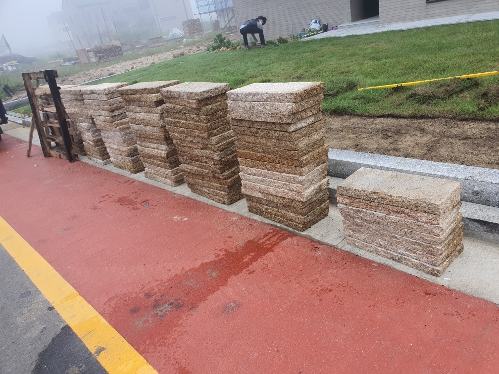 벽돌, 대리석, 자갈, 골재, 시멘트블럭, 잔디블럭, 잔디 등 파래트