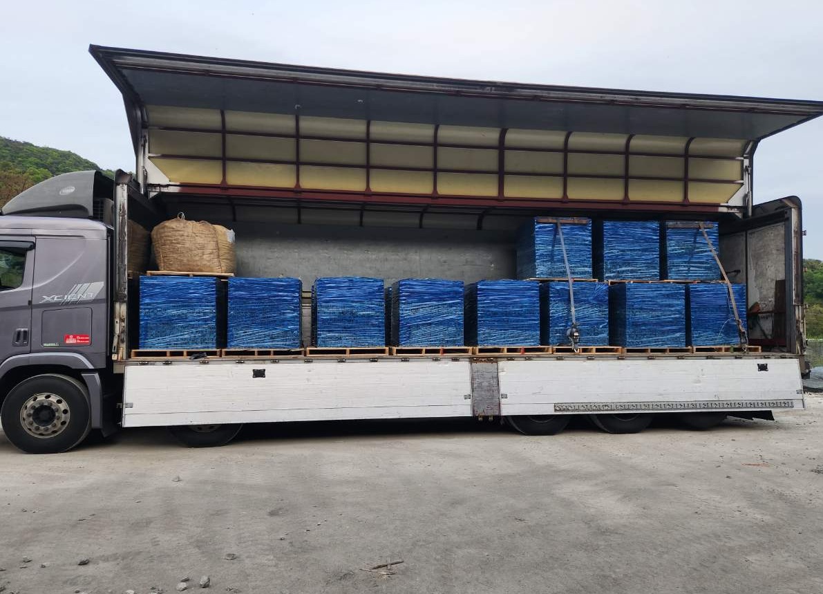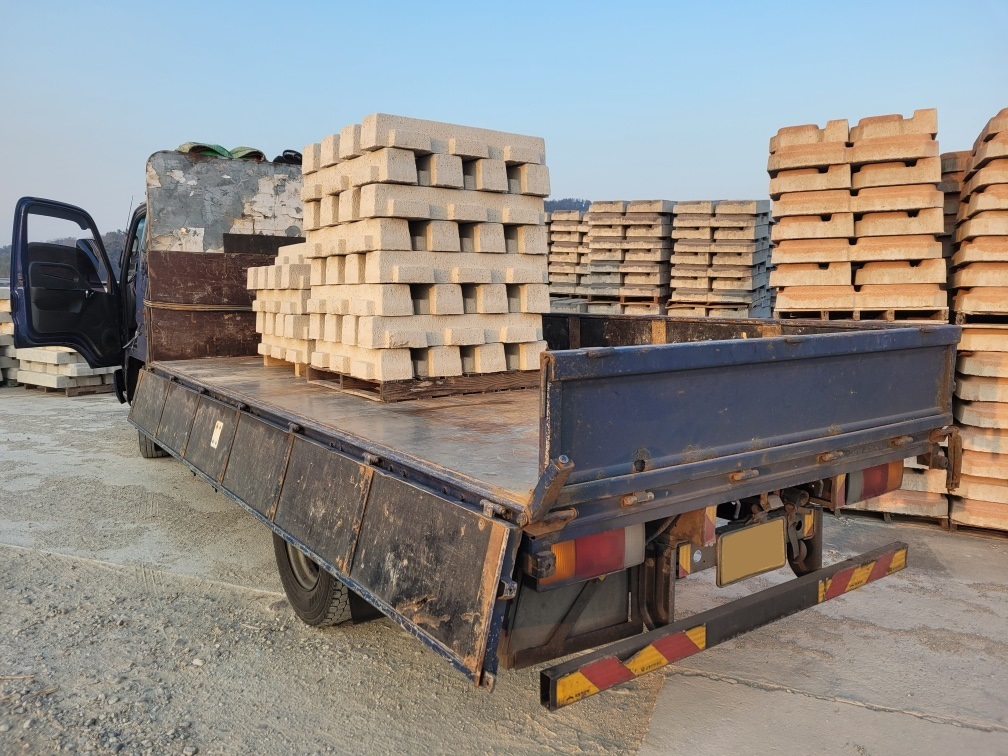 현무암자연괴석4파래트, 잔디2파래트 혼합으로 5톤 윙화물차에 상차사진입니다.