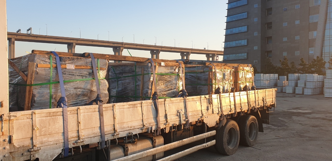 현장에 이상태로 도착하면 지게차나 장비로 하차하시면 됩니다. 참고하세요.
