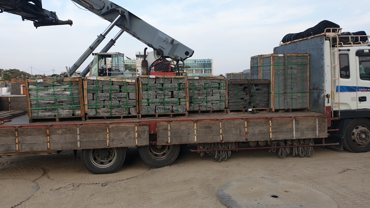 물류창고 현무암 부정형 디딤석 50t 1파래트와