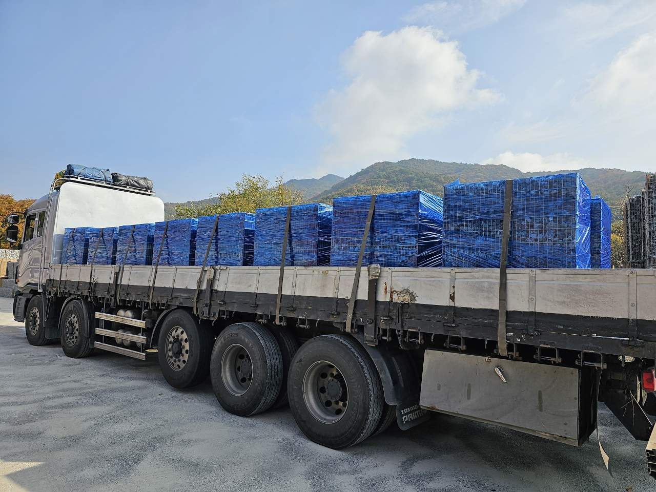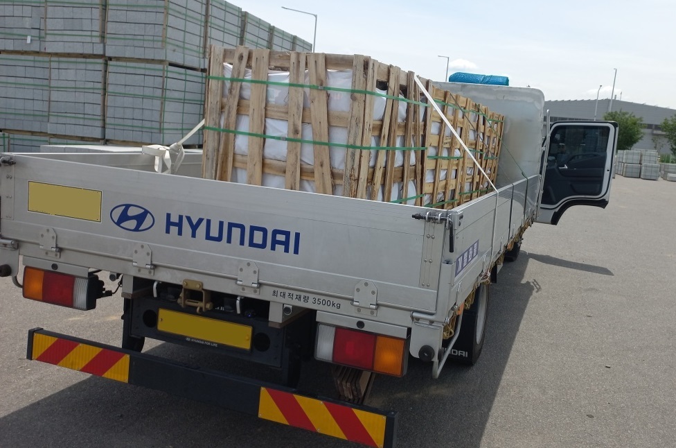 현장에 이상태로 도착하면 지게차나 장비로 하차하시면 됩니다. 참고하세요.