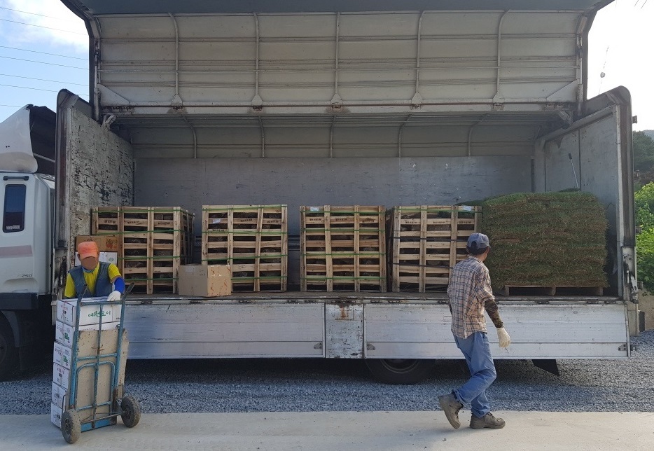 잔디1파래트 상차후 연천 백학면 두일리 전원주택공사현장으로 출발